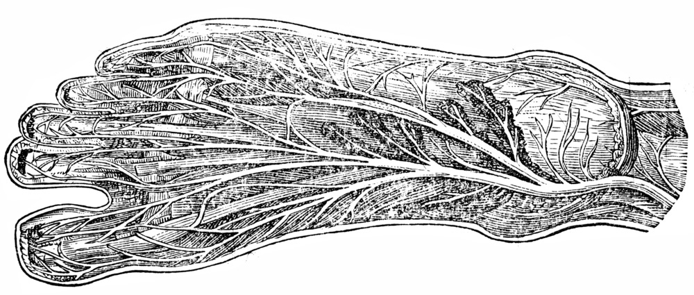 “Nerves of the foot” an illustration from the encyclopedia publishers Education, St. Petersburg, Russian Empire 1896.