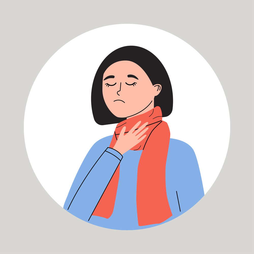 lots of mucus in the throat; hard to cough up, must swallow it; thick and sticky